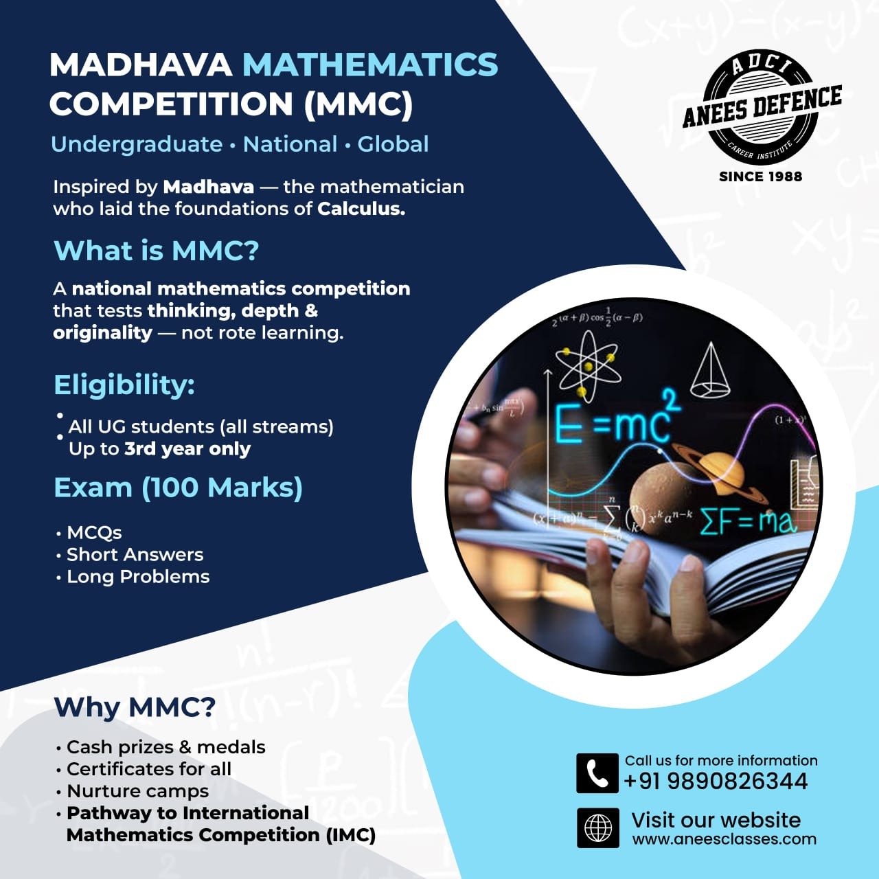 Your math skills are elite. Prove it. 🏆 The Madhava Mathematics Competition is officially open for all undergraduate students. Why wait? Accelerate your career by competing on a national level today. The Goal: Move beyond rote learning and master the foundations of logic. The Reward: From cash prizes to the *International Mathematics Competition (IMC). Legacy started with Madhava. Your legacy starts here.