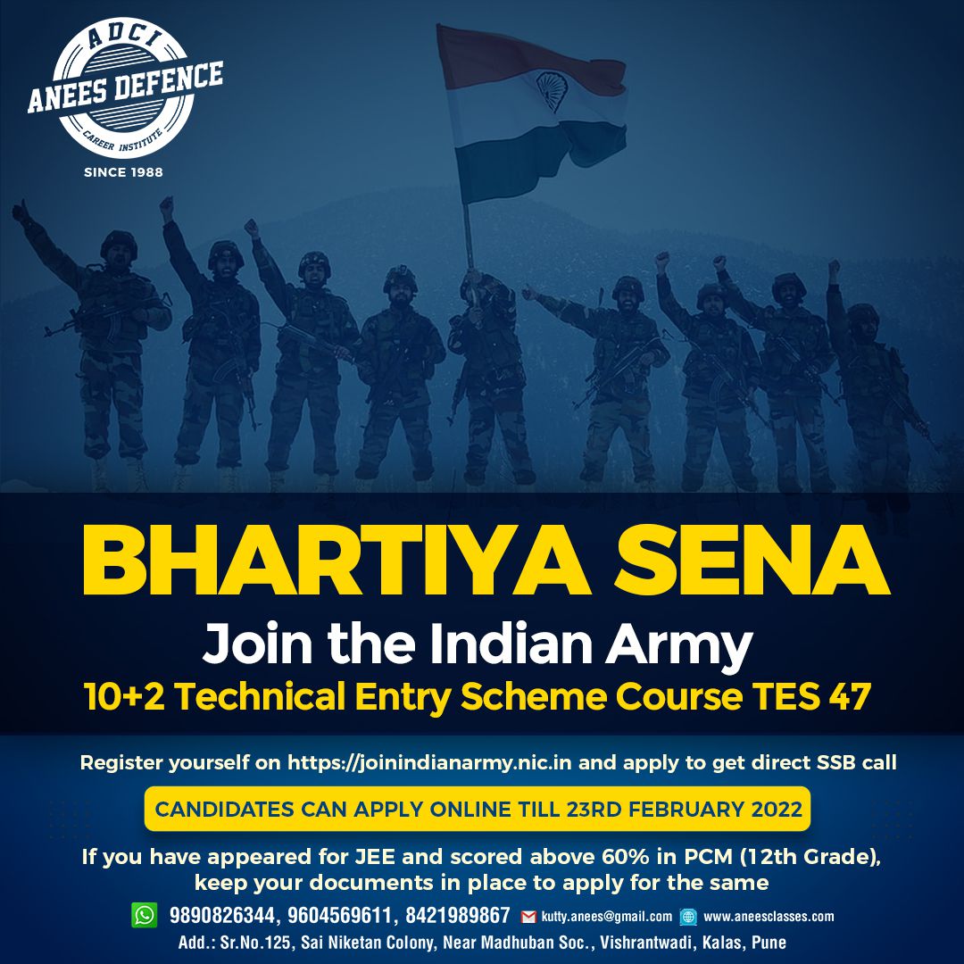 Join the Indian Army 10+2 Technical Entry Scheme Course TES 47 Candidates Can Apply Online Till 23rd February 2022