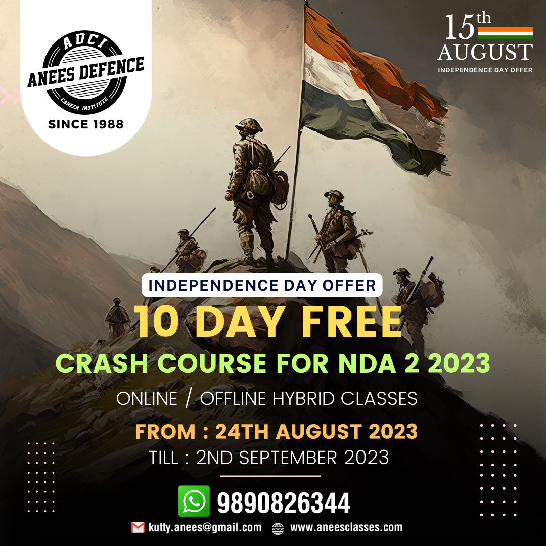 Get Ready for NDA 2 Exam 2023 in just 10 Days! Join our FREE Crash Course now and ace the exam with confidence. Expert guidance, comprehensive study materials, and strategic tips will be provided to help you succeed. Enroll today and march towards your dream career in the defense forces. Limited seats available, so act fast! #NDA2CrashCourse #AimHigh Follow us on Instagram for updates: https://www.instagram.com/anees_classes/ Team ADCI 9890826344 NDA NDA 2 NDA Crash Course NDA Exam NDA Exam Crash Course NDA Online Crash Course NDA Exam Online Preparation